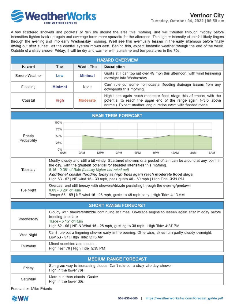 There continues to be a threat for coastal flooding at high tide on Tuesday, October 4. Please do not drive through flooded streets.