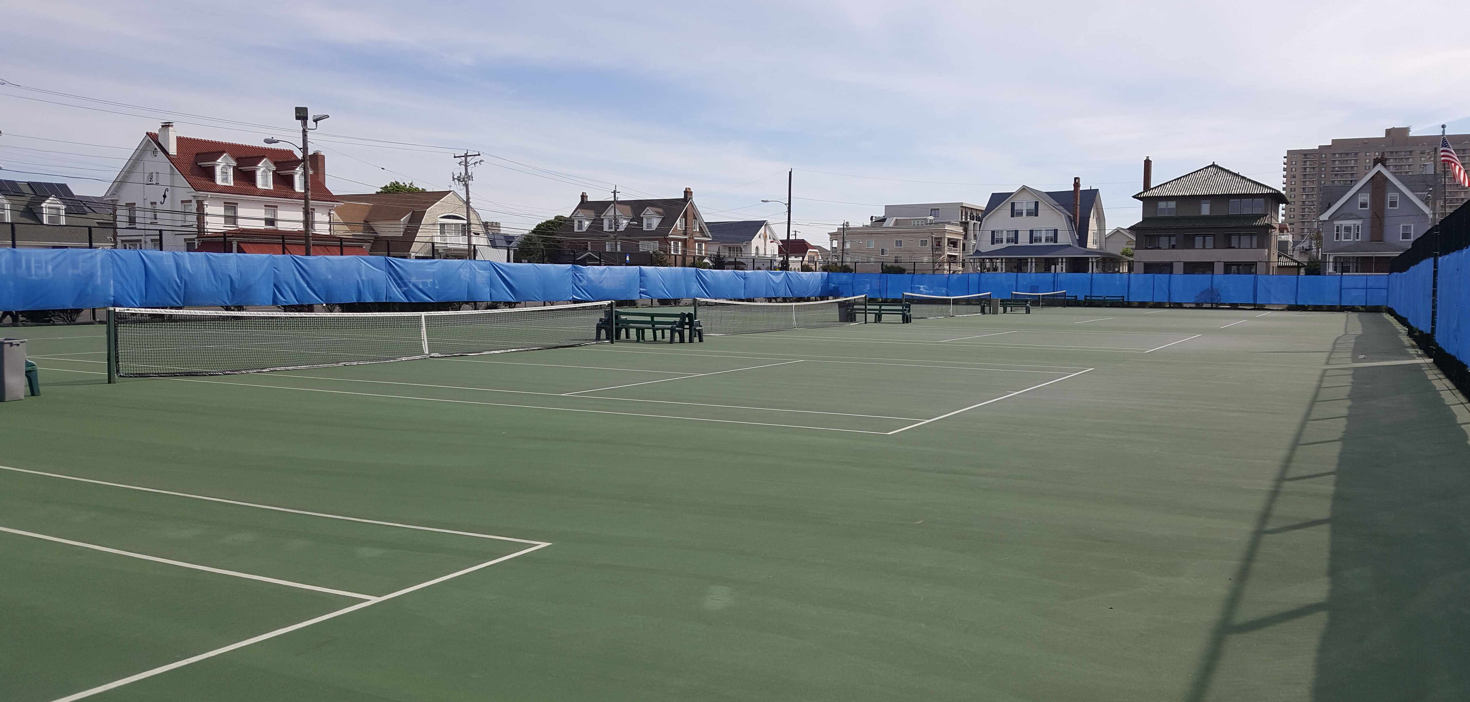 The property contains Five full tennis courts, Six pickle ball courts, a full basketball court, six volleyball courts, two tennis walls, a handicap accessible playground, and full bathrooms.    Courts are open year-round.  Court fees are charged starting weekends on Memorial weekend.  Full week fees start mid-June until Labor Day.
