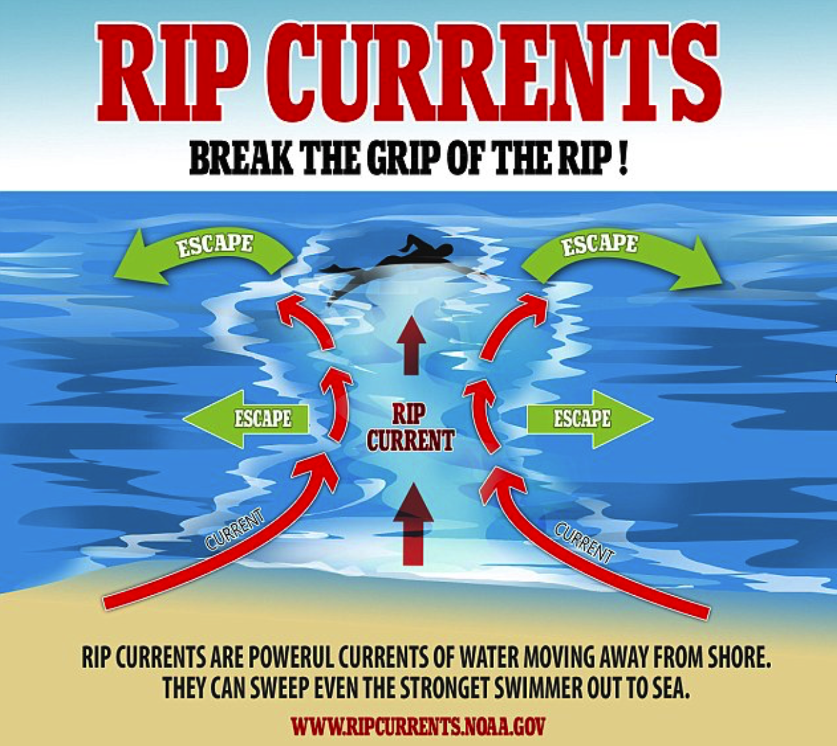 Rip Currents are very common and can be dangerous to even the most skilled swimmers. To avoid getting into trouble with rip currents: