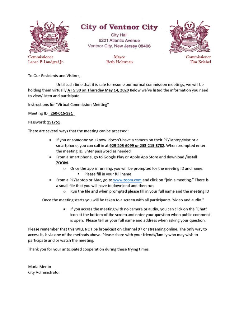 Until such time that it is safe to resume our normal commission meetings, we will be holding them virtually. The next upcoming meeting is at 5:30 on Thursday May 14, 2020. Below we have listed the information you need to view/listen and participate.