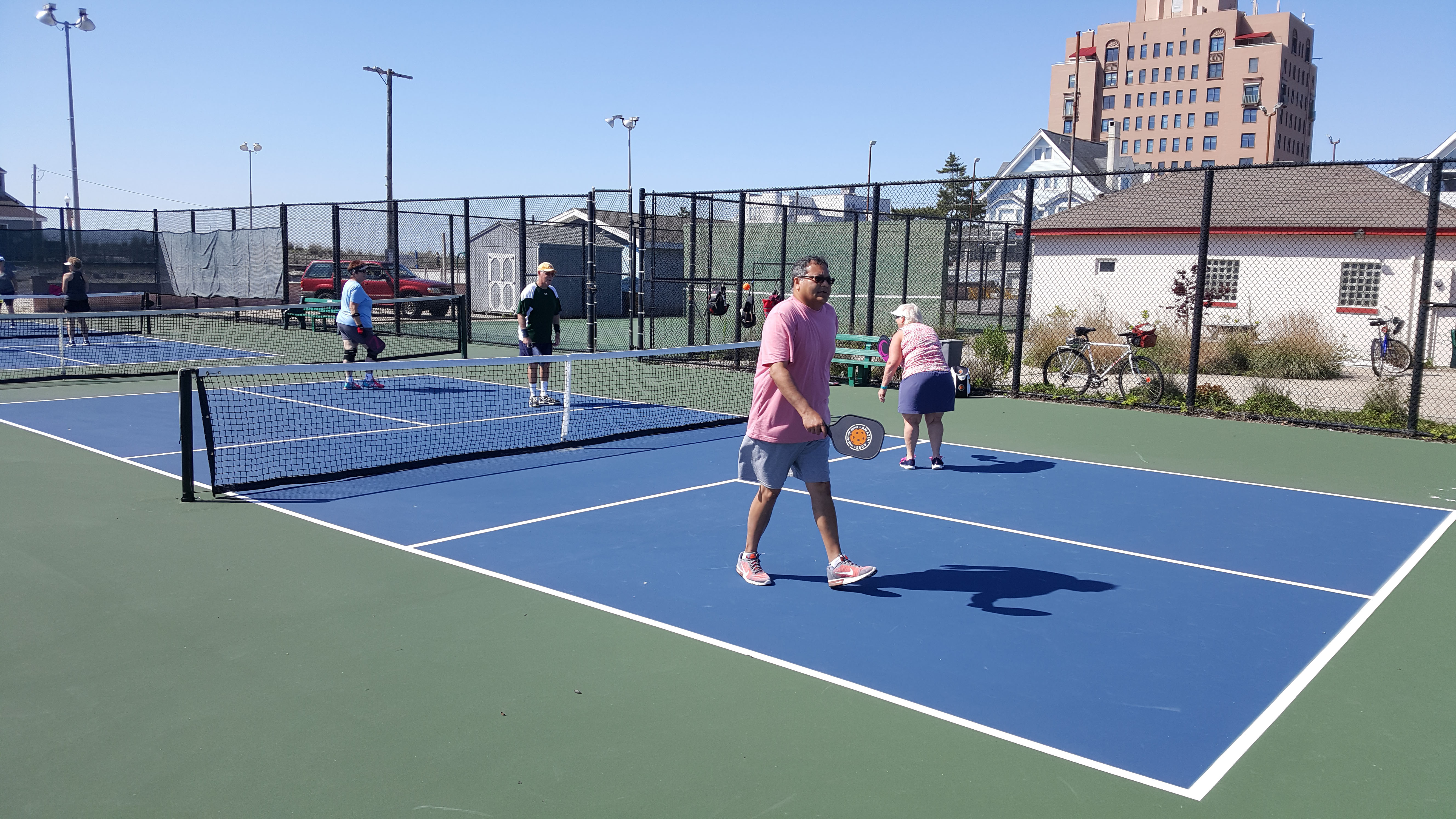 The property contains Five full tennis courts, Six pickle ball courts, a full basketball court, six volleyball courts, two tennis walls, a handicap accessible playground, and full bathrooms.    Courts are open year-round.  Court fees are charged starting weekends on Memorial weekend.  Full week fees start mid-June until Labor Day.